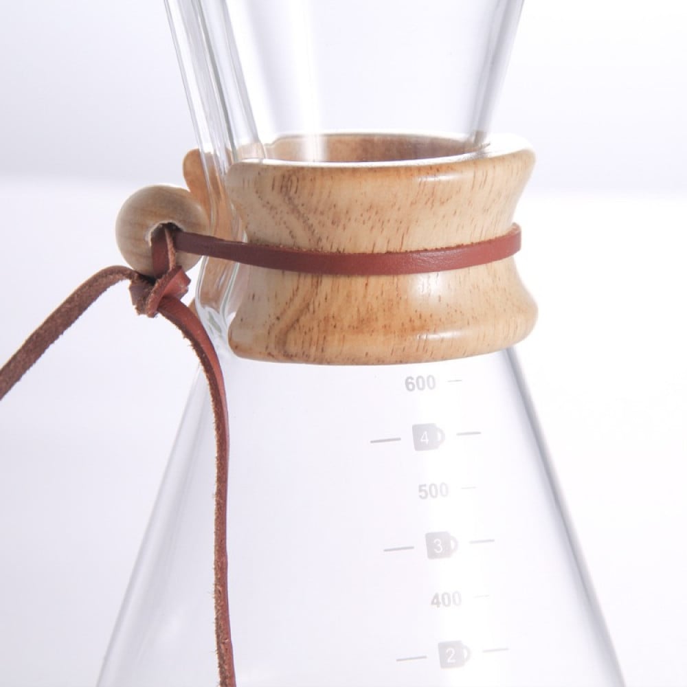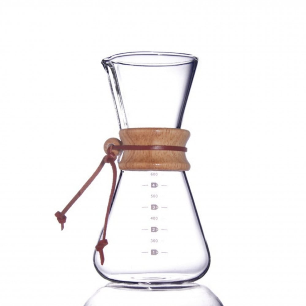 مصممة من الزجاج، وتحتوي على مقبض خشبي لسهولة الحمل والاستخدام.