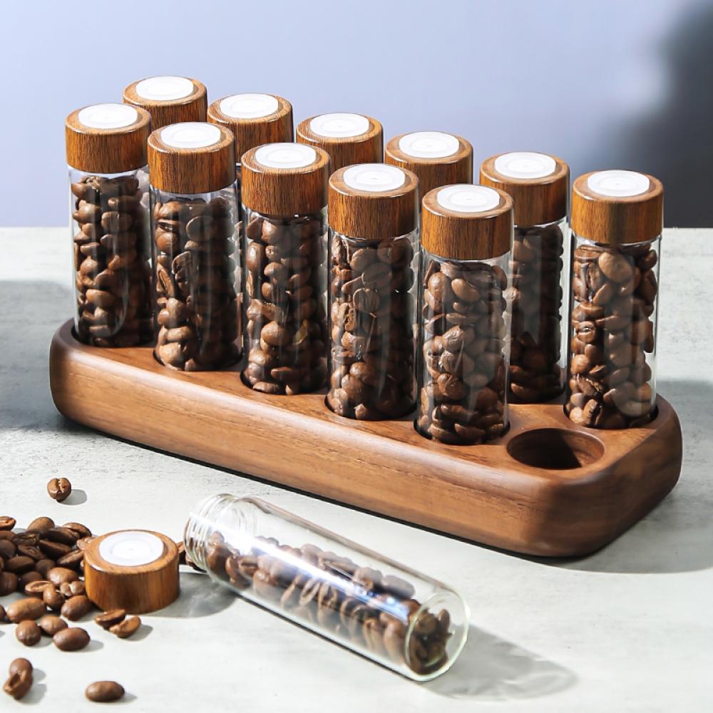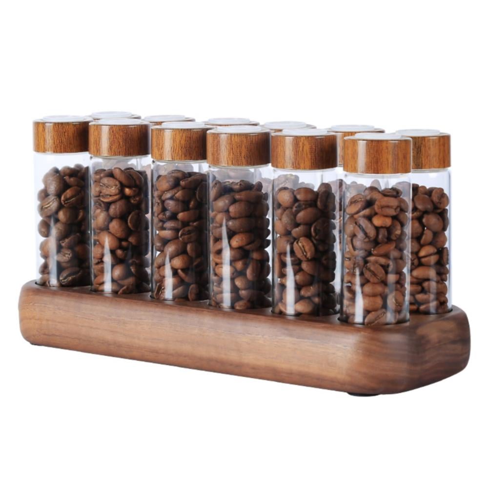 🫘 مجموعة زجاجات تخزين حبوب القهوة – 12 عبوة لحفظ النكهة والطزاجة