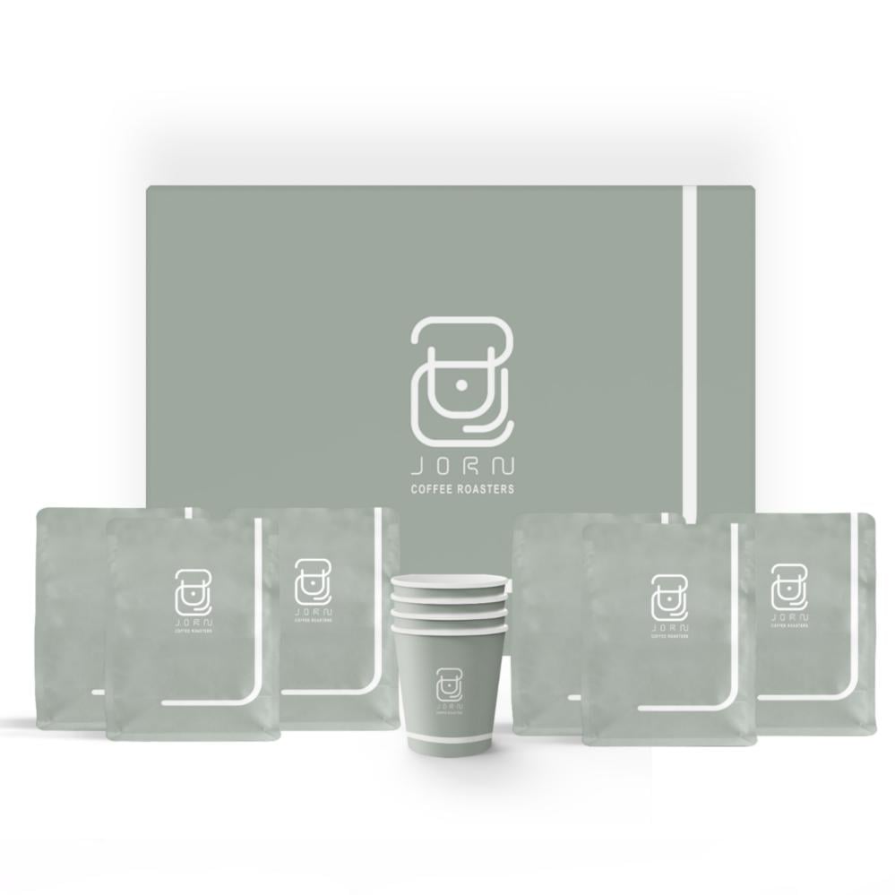 بوكس التذوق من محمصة جرن يحتوي على 6 محاصيل مميزة وفاخرة (100g لكل محصول) بالأضافة إلى أكواب ورقية بشعار محمصة جرنحبوب البُن كاملة