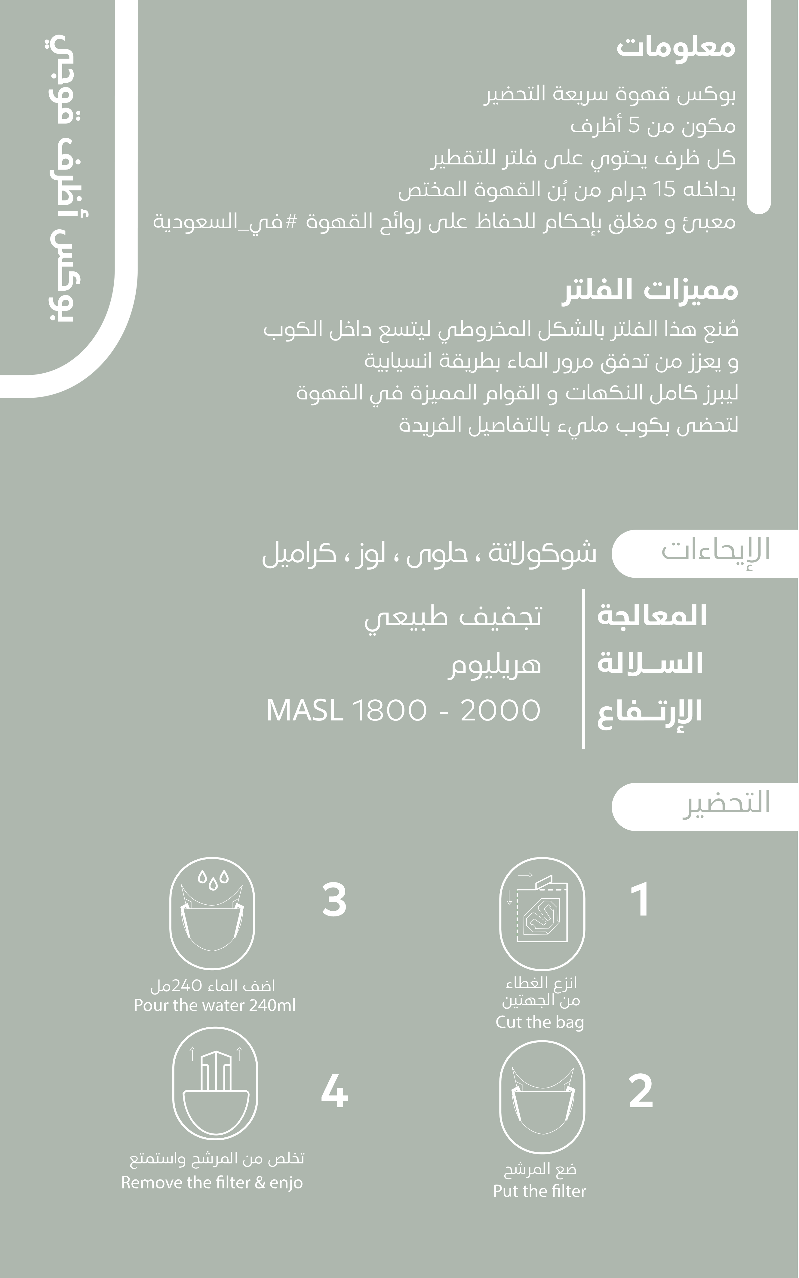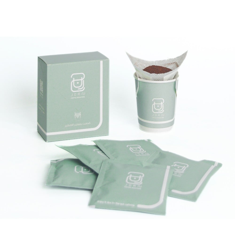 بوكس أظرف قهوة مطحونة سريعة التحضير ( 5 أظرف ) , كل ظرف يحتوي على فلتر للتقطير بداخله 15 جرام بن قهوة مختصة معبئ ومغلق بإحكام للحفاظ على جودة ورائحة القهوة المميزة.