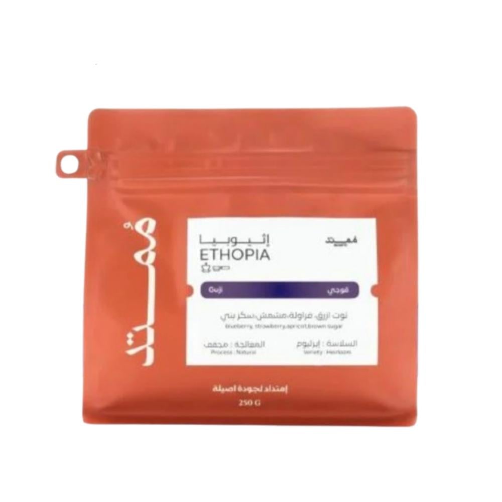 المنطقة : أثيوبياالمعالجة : مجففةالسلالة : هيريليومالايحاءات : توت أزرق , فراولة , مشمش , سكر بنيحبوب البُن كاملة