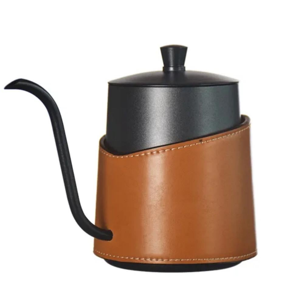 تم تصميم غلاية القهوة باستخدام جلد فائق الصلابة لمقاومة الحروق، إن إبريق التنقيط اليدوي الخاص بنا مزود بمقياس سعة علامة فولاذية للقياس المثالي