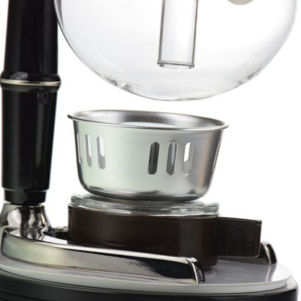 سعة الإناء : 5 أكواب . الوعاء العلوي والوعاء السفلي مصنوع من أفضل زجاج البورسليكات المقاوم للحرارة. الحامل مصنوع من الفولاذ المقاوم للصدأ مزود بمقبض.
