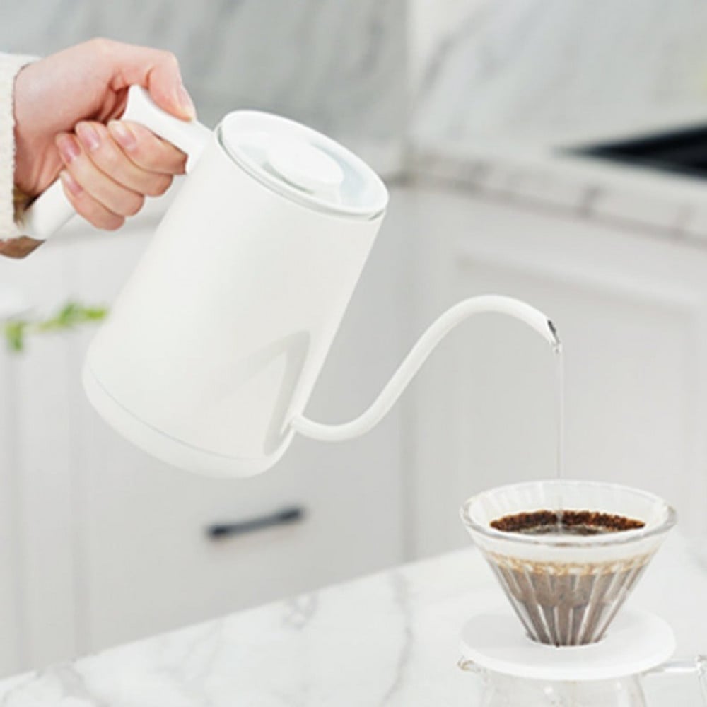 ابريق الترشيح الكربائي من تايمور نسخة مصغره من الاصدار السابق لكن بنفس العمليه وخامات التصنيع، يتميز بواجهة تحكم باللمس ويعمل بقوة 1000واط ويسمح بالصب بزاوية 90 وعنق رفيع لصب دقيق .